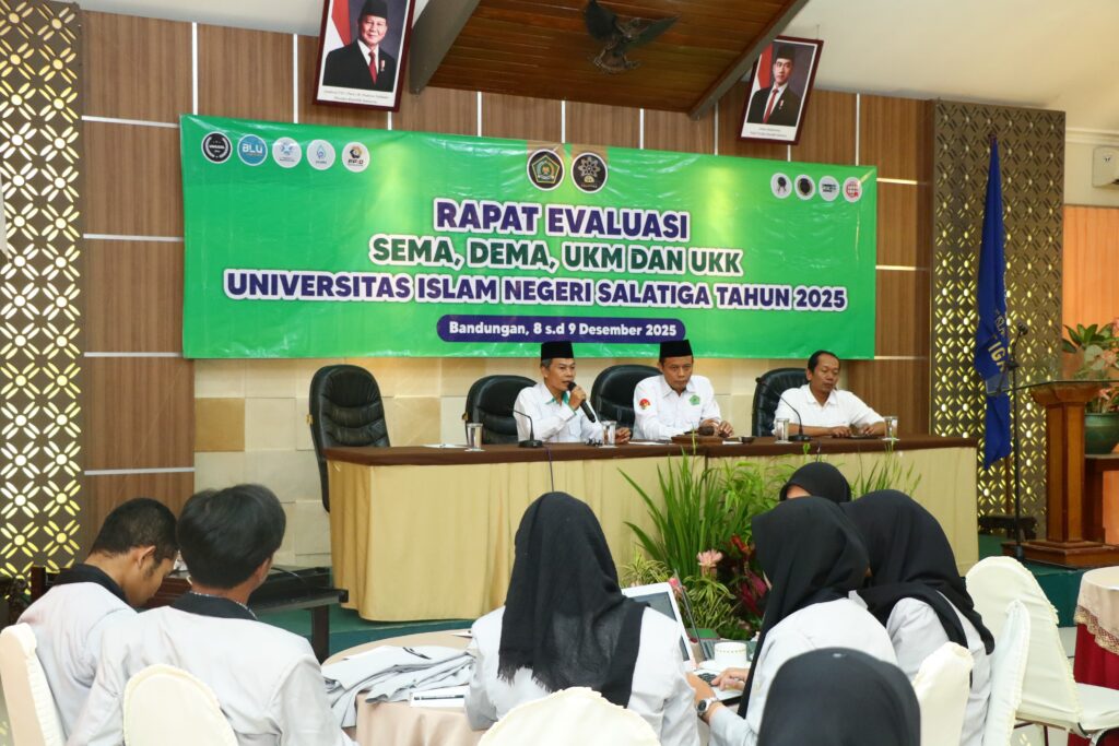 Semarang – Universitas Islam Negeri (UIN) Salatiga gelar evaluasi akbar organisasi mahasiswa (Ormawa) di Nugraha Wisata Hotel & Convention, Semarang, Senin-Selasa (8-9/12/2025). Pertemuan yang melibatkan perwakilan SEMA, DEMA, UKM, dan UKK ini menjadi ajang “bersih-bersih” dan upgrade skill bagi para aktivis kampus.