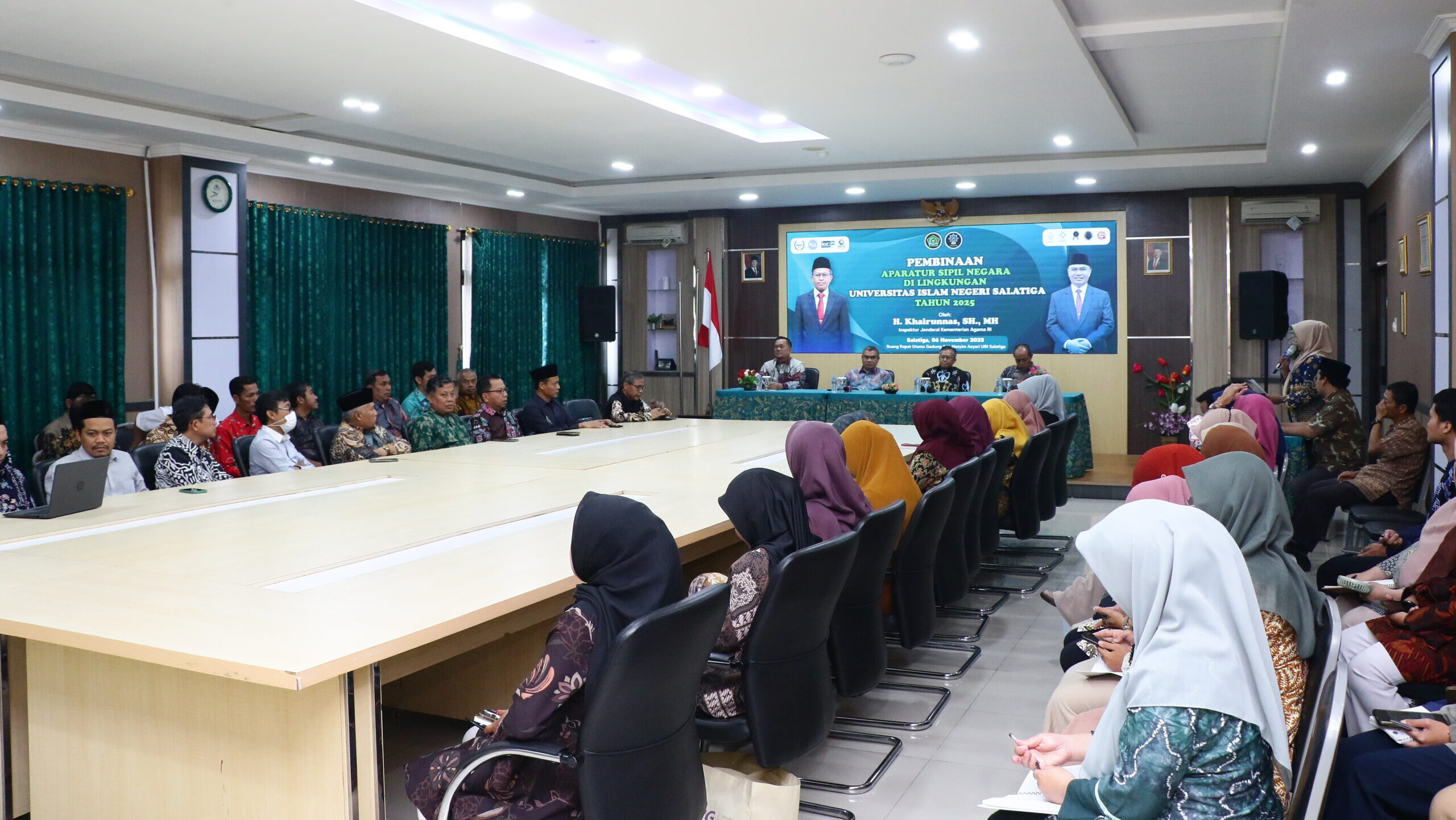 SALATIGA-Inspektur Jenderal Kementerian Agama RI, H. Khairunnas, M.H., menekankan pentingnya menjaga integritas bagi para Aparatur Sipil Negara. Hal itu ia sampaikan saat memberikan pembinaan kepada ASN di lingkungan Universitas Islam Negeri Salatiga, Kamis (6/11). “ASN harus dapat menghidupi semangat integritas dalam kesehariannya. (Integritas harus) diimplementasikan dalam setiap pekerjaan agar layanan yang kita berikan kepada stake...Read More
