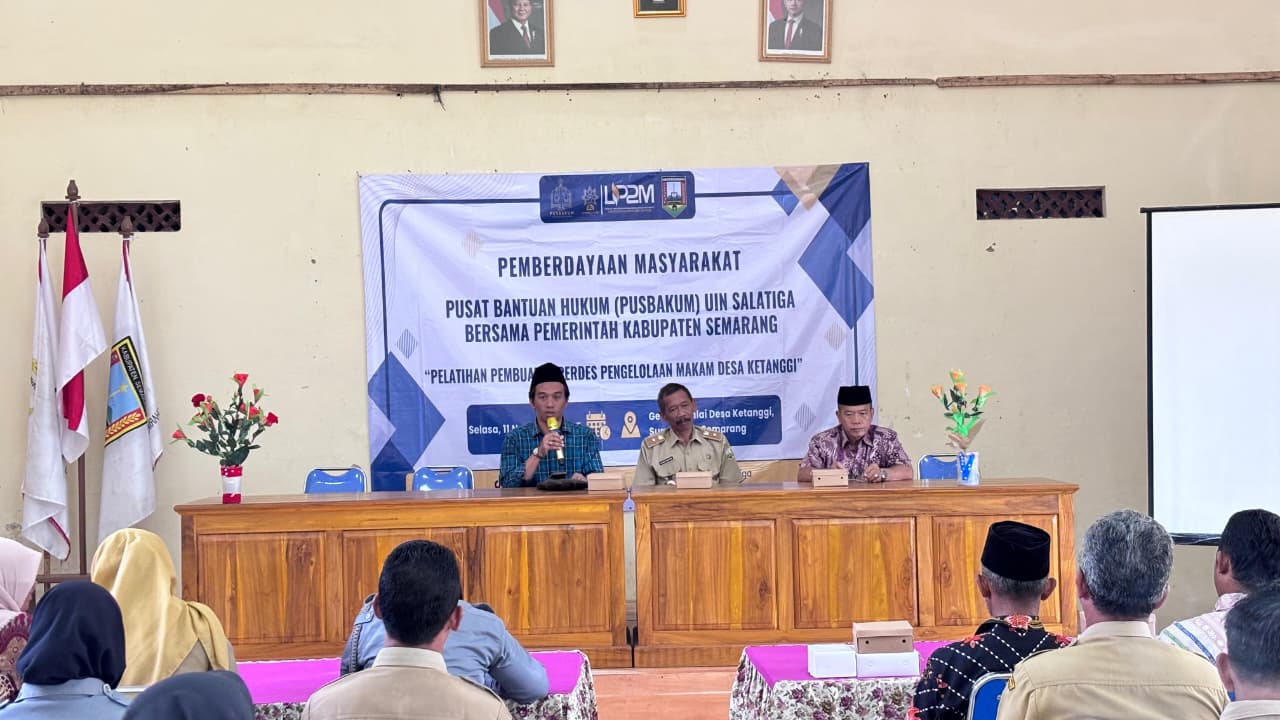 SALATIGA-Pusat Bantuan Hukum (Pusbakum) Universitas Islam Negeri Salatiga kembali menunjukkan komitmennya dalam memberdayakan masyarakat desa melalui kegiatan Pelatihan Pembuatan Peraturan Desa (Perdes) tentang Pengelolaan Makam. Kegiatan yang bertujuan untuk mendorong tata kelola desa berbasis hukum tersebut dilaksanakan di Balai Desa Ketanggi, Kecamatan Suruh, Kabupaten Semarang pada Selasa (11/11).