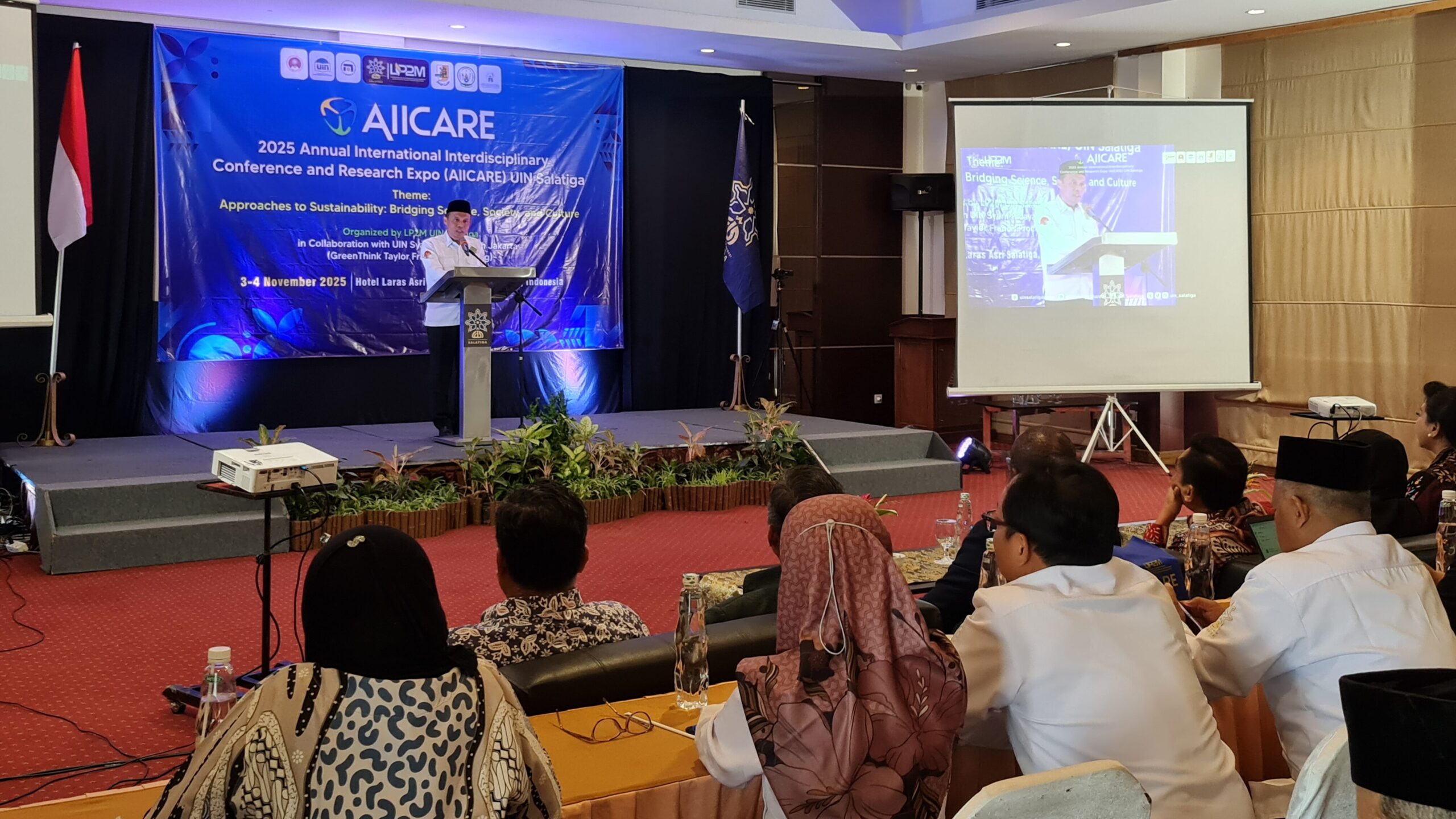 SALATIGA-Universitas Islam Negeri Salatiga melalui Lembaga Penelitian dan Pengabdian kepada Masyarakat (LP2M) menggelar pameran riset internasional 2025 Annual International Interdiciplinary Conference and Research Expo (AIICARE). Kegiatan yang mengangkat tema Approaches to Sustainability: Bridging Science, Society, and Culture tersebut digelar selama tiga hari, Senin-Selasa (3-4/11) dan terselenggara atas kolaborasi dengan UIN Syarif Hidayatullah Jakarta (GreenThink Taylor Francis Proceeding).