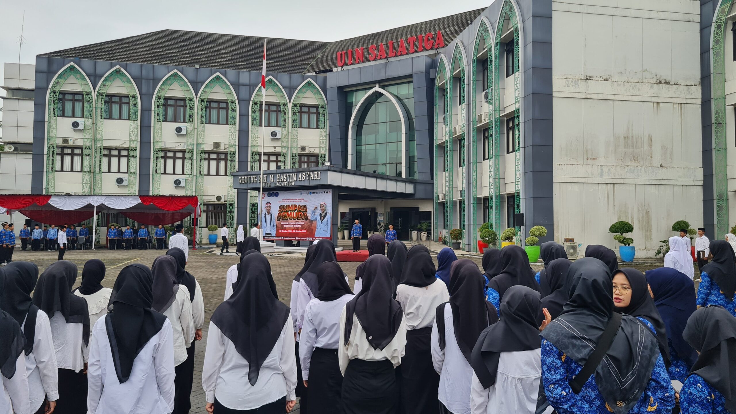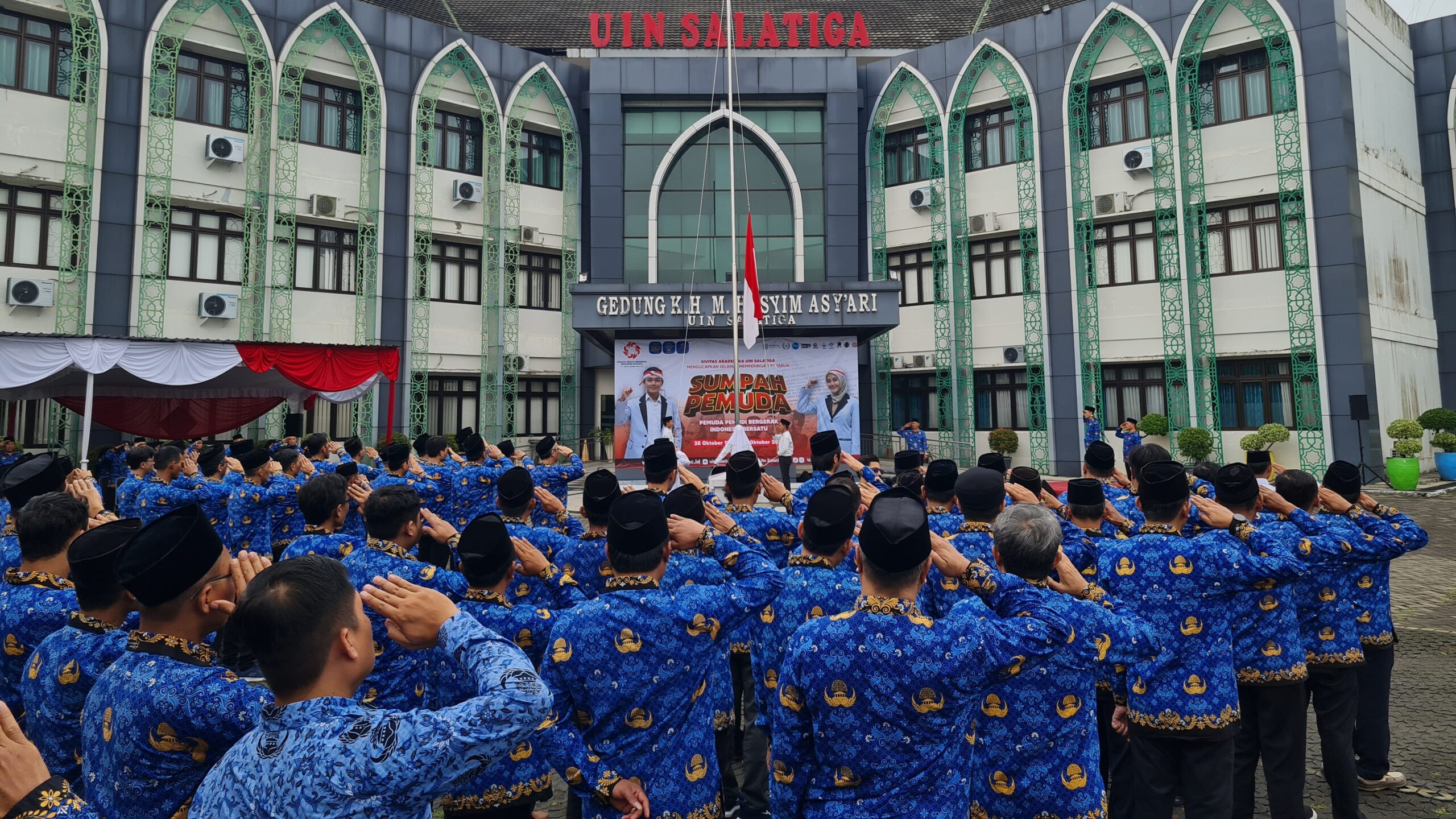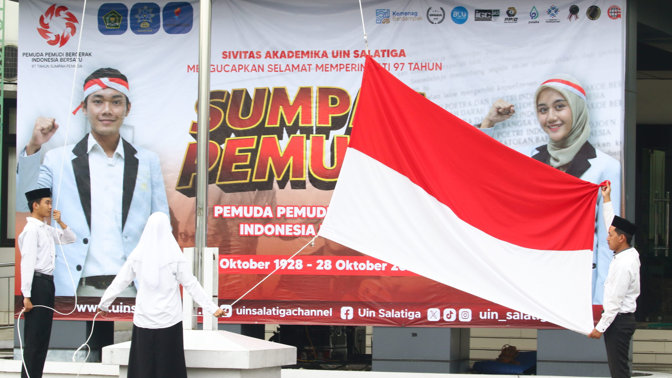 SALATIGA-Sivitas akademika Universitas Islam Negeri Salatiga yang terdiri dari tenaga pendidik, tenaga kependidikan, dan perwakilan mahasiswa menggelar Upacara Peringatan Hari Sumpah Pemuda ke-97, Selasa (28/10). Upacara yang dipimpin oleh Wakil Rektor Bidang Kemahasiswaan, Alumni dan Kerjasama, Dr. Suwardi tersebut dilaksanakan di halaman Gedung KH. Hasyim Asyari.