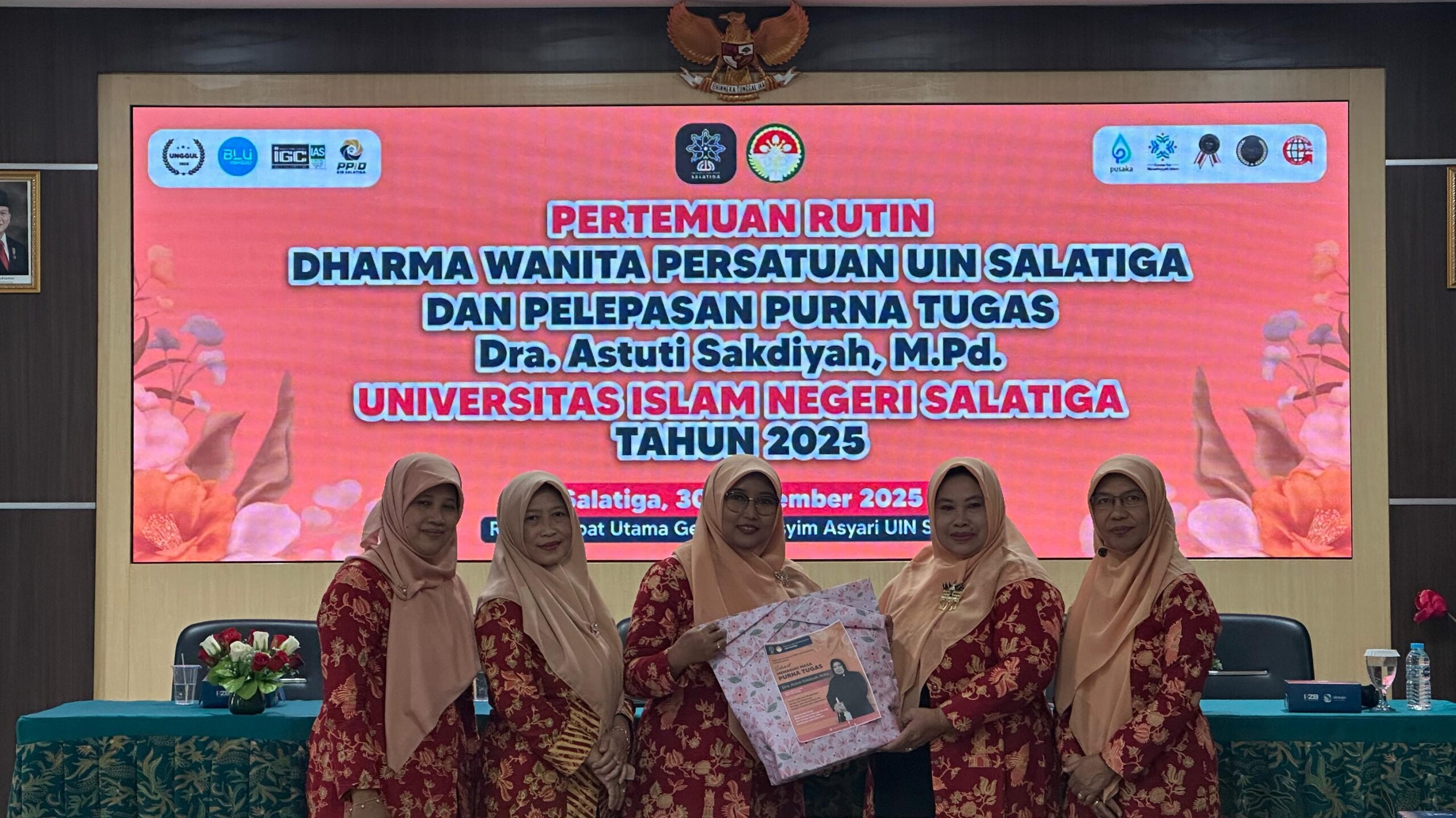 SALATIGA-Dharma Wanita Persatuan Universitas Islam Negeri Salatiga menggelar Pertemuan Rutin pada Selasa (30/9). Pertemuan rutin yang digelar di Ruang Rapat Gedung KH. Hasyim Asyari itu sekaligus menjadi ajang pelepasan purna tugas Ibu Astuti Sakdiyah, M.Pd.