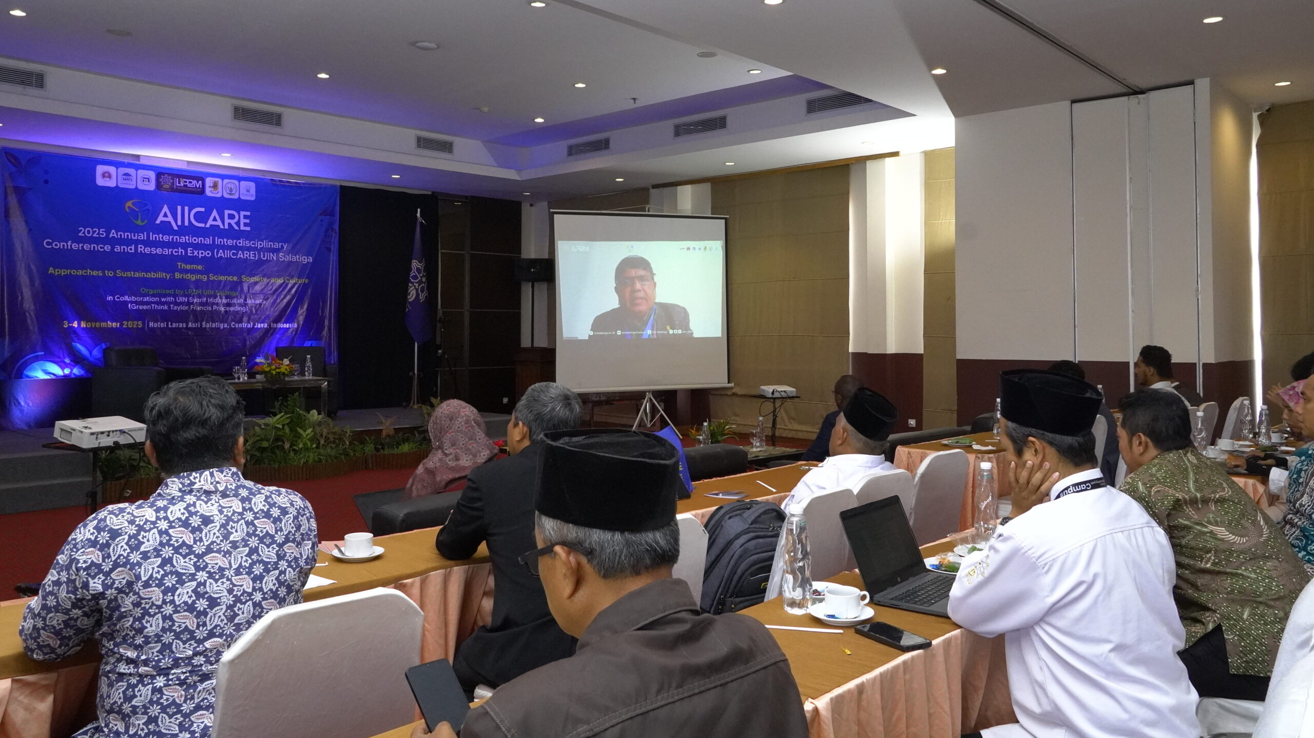 SALATIGA-Rektor Universitas Islam Negeri Salatiga, Prof. Zakiyuddin Baidhawy menyampaikan pentingnya perkembangan berkelanjutan pada gelaran 2025 Annual International Interdiciplinary Conference and Research Expo (AIICARE), Senin (3/11). “Keberlanjutan dapat didekati dari berbagai sisi, seperti sains, kebudayaan, dan masyarakat,” ujarnya.
