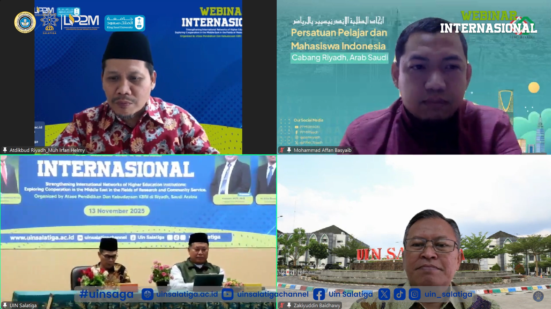 SALATIGA-Universitas Islam Negeri Salatiga siap menjajaki kerja sama dengan Kerajaan Arab Saudi. Hal tersebut disampaikan Rektor UIN Salatiga, Prof. Zakiyuddin Baidhawy pada Webinar Internasional Penguatan Jaringan Internasional Perguruan Tinggi: Menjajaki Kerja Sama di Timur Tengah pada Bidang Riset dan Pengabdian Masyarakat, Kamis (13/11). Kegiatan yang diadakan oleh Lembaga Penelitian dan Pengabdian kepada Masyarakat (LP2M) UIN Salatiga itu digelar secara luring-daring.